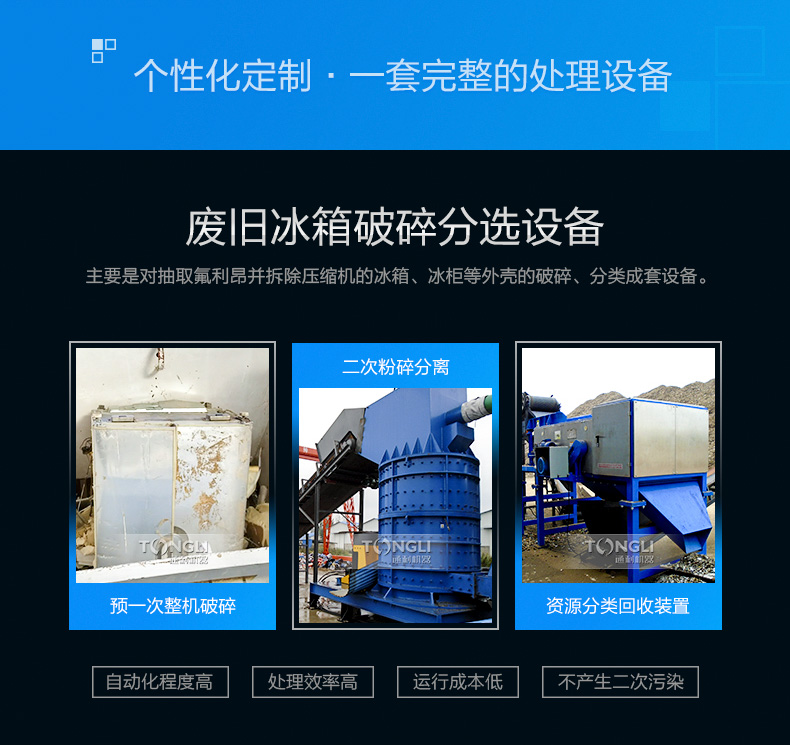 詳情 廢舊冰箱破碎分回收成套設備